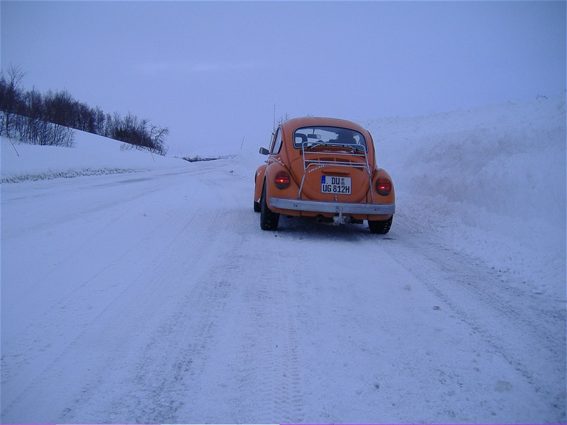Die gesamte Fahrt von rund 3000 Kilometern für 75 Kilometer Teststrecke. Das Käferchen hatte sich super geschlagen und sich als nordkaptourtauglich erwiesen.