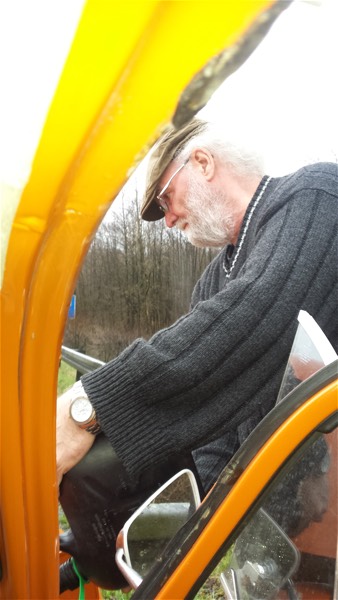 Nach einer halben Stunde ging der Käfer plötzlich aus, und wir standen ohne einen Tropfen Sprit im Tank da. Weil wir die Geländereifen bei der Rückfahrt drauf gelassen haben, war der Spritverbrauch erheblich gestiegen, und nun musste Bob bei eisendpeitschendem Wind den Reservekanister aus dem Kofferraum holen und nachtanken. Natürlich fiel das Kopfkissen bei geöffneter Haube gleich auf die nasse Straße. Kissen eingesammelt, den Kanister verstaut und schon hatte die Straße uns wieder.