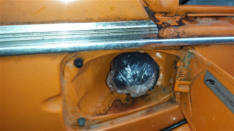 Da wir mit der Geschwindigkeit und dem Schätzen des Verbrauchs gut zurechtkamen, erhielten wir einen weiteren Schwierigkeitsgrad. Beim ersten Tanken in Norwegen verloren wir unseren Tankverschluss.